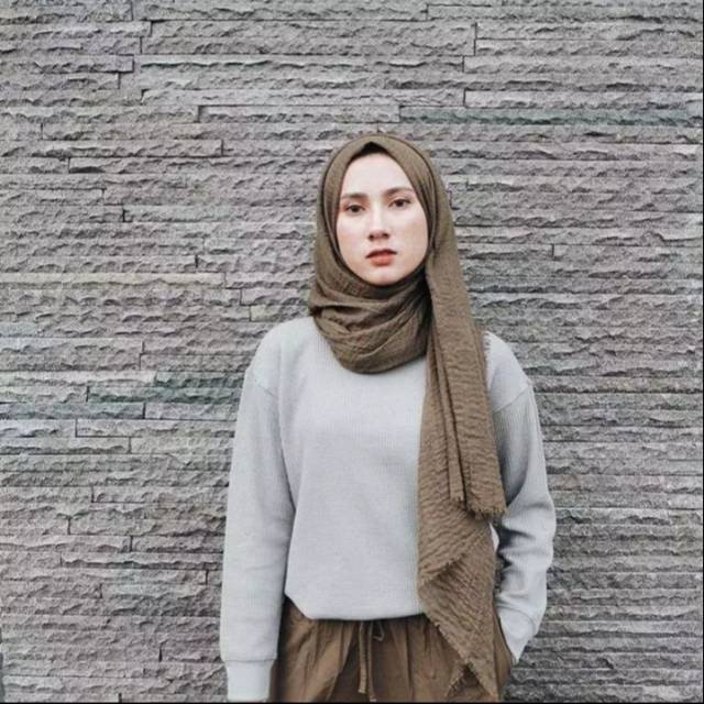 Hijab warna nude, cream atau beige yang jauh dari kesan mencolok untuk pemilik kulit sawo matang.